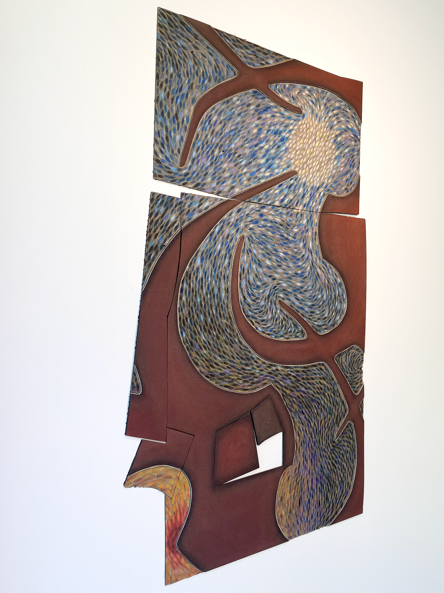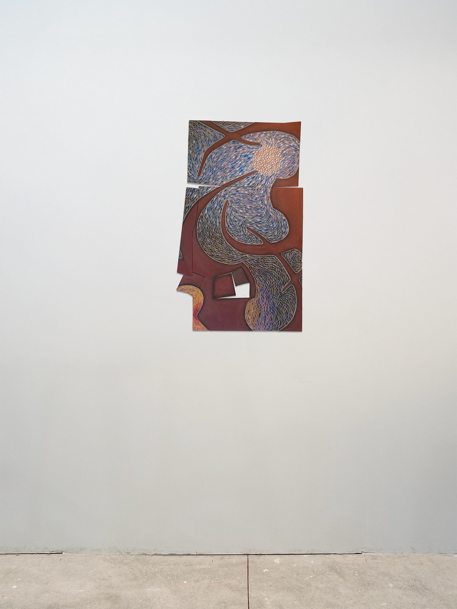 2025 / Low-relief carved wood, colored pencil, watercolor, ash, natural pigment, graphite / 46”x27.5”